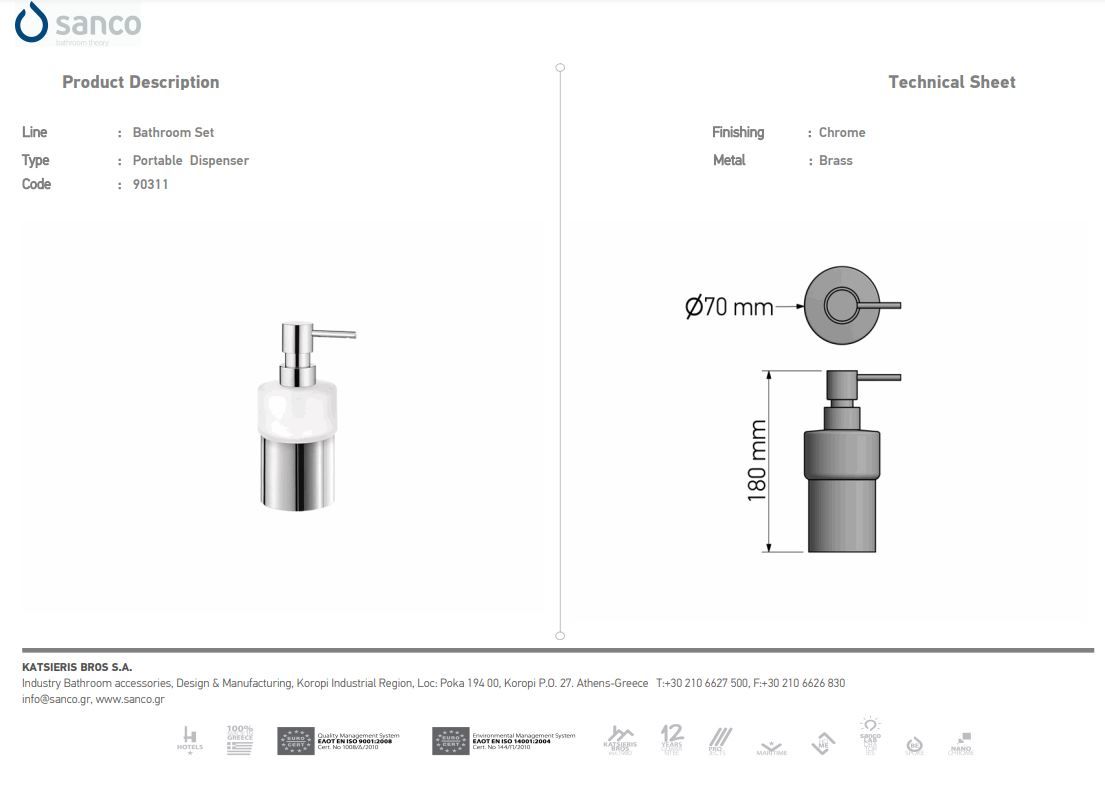 Ντισπένσερ Επικαθήμενο Χρωμέ Sanco Glass Bathroom Set 90311-A03