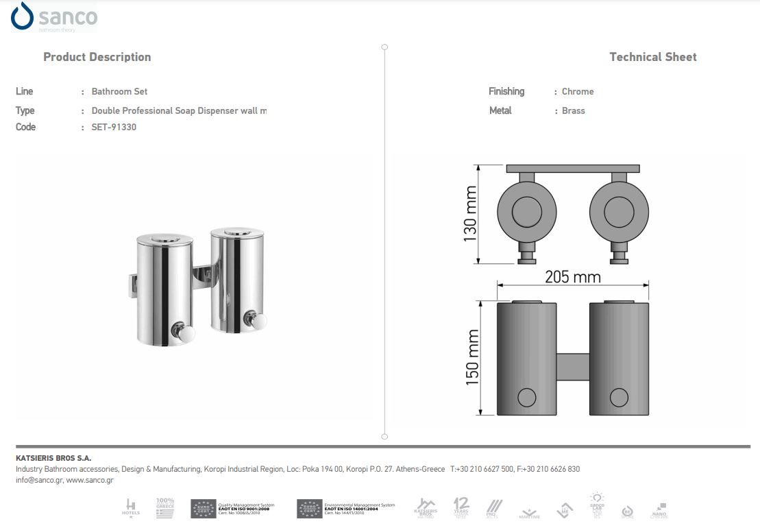 Professional Double Soap Dispenser wall mounted.