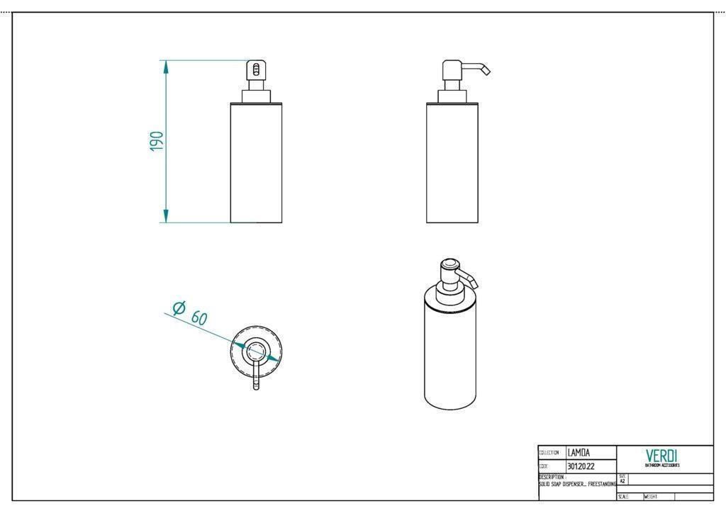 Ντισπένσερ Μεταλλικό W60xD60xH190mm Gun Metal Gloss Verdi 3012050