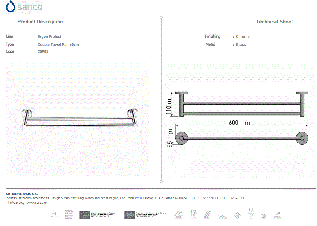 Πετσετοθήκη Διπλή Bronze Mat Sanco Ergon 25905-M25