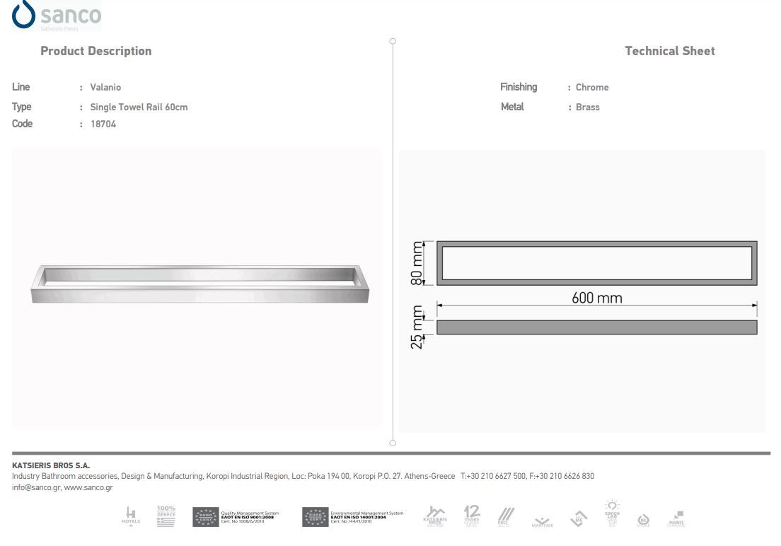 Πετσετοοθήκη Μονή 60 εκ. Sanco Valanio Chrome 18704-M116