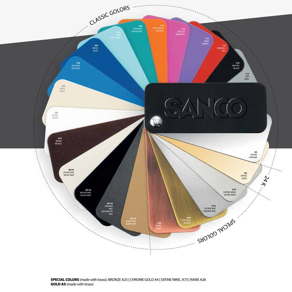 Διατίθεται σε φινίρισμα: Chrome, Graphite Dark, White Mat, Beige Mat, Black Mat, Anthracite Grained, Dark Bronze Mat, Gun Metal, Brushed Nickel, Brass Brushed,