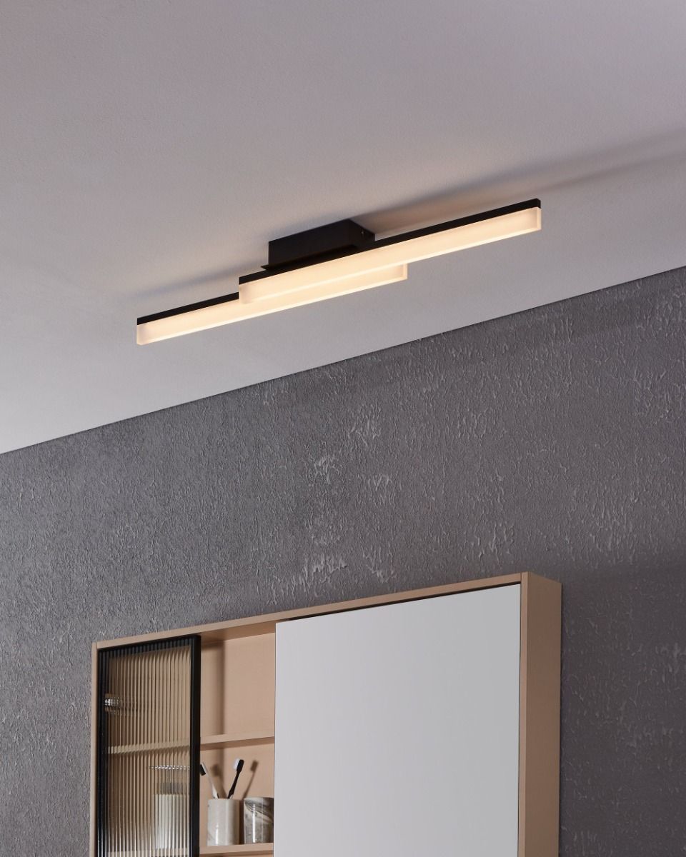 Πλαφονιέρα οροφής της Eglo σε μαύρο χρώμα. Διαθέτει ενσωματωμένο LED.