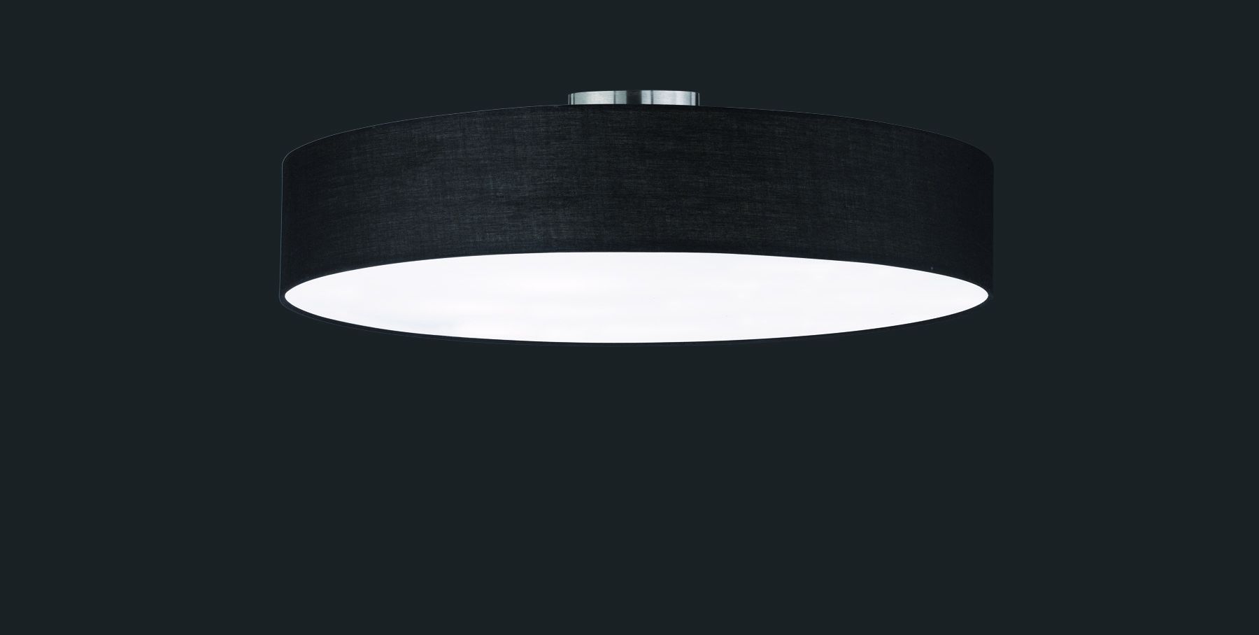 Μοντέρνα πλαφονιέρα οροφής της Trio Lighting σε μαύρο χρώμα, από ύφασμα. Διαθέτει ντουί για λαμπτήρες E27.