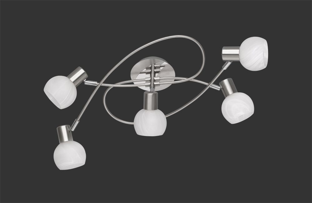 The five-bulb ceiling light has a width of 52 cm and a height of 23 cm. All commercially available light sources with an E14 socket and max. 28 watts can be used.