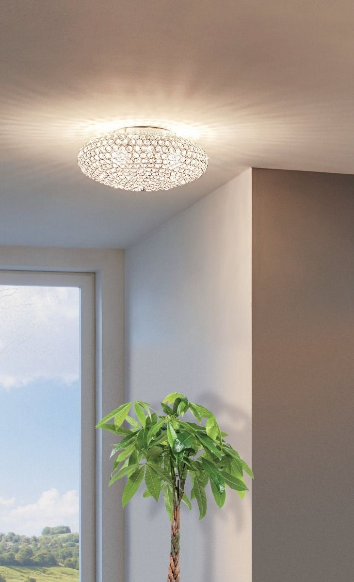 Πλαφόν Οροφής Ø350xH200mm Δίφωτο 2xE27 Ατσάλι Χρωμέ-Κρυσταλλάκια Eglo Clemente 95284