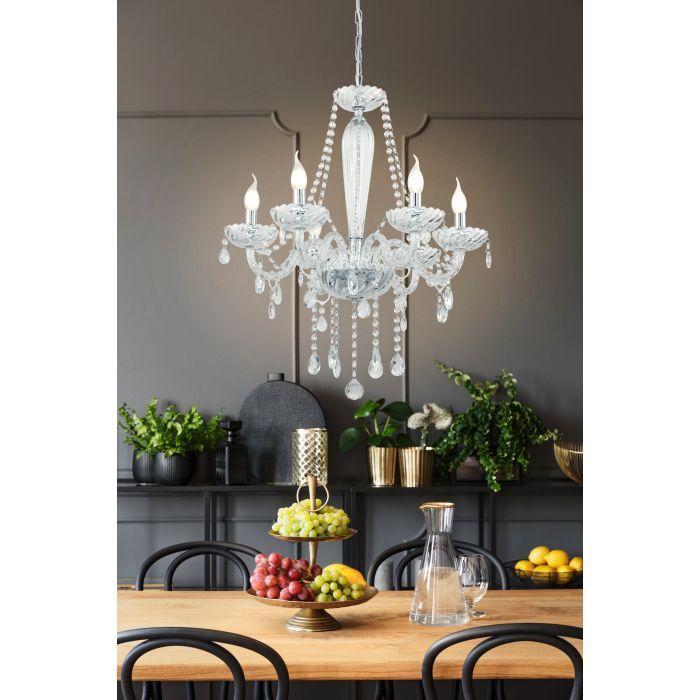 Πολυέλαιος Εξάφωτος 72xH130cm 6xE14 Χρώμιο -Διάφανο Eglo Basilano 39099