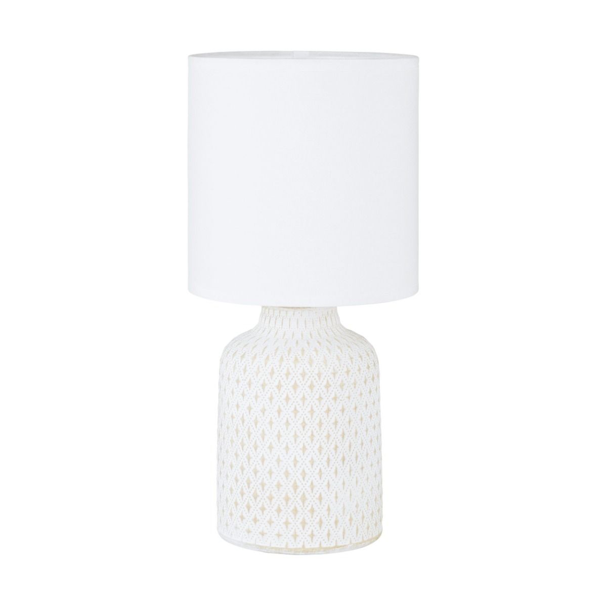 Μοντέρνο πορτατίφ της Eglo με λευκό καπέλο και βάση σε μπεζ χρώμα, από κεραμικό υλικό.