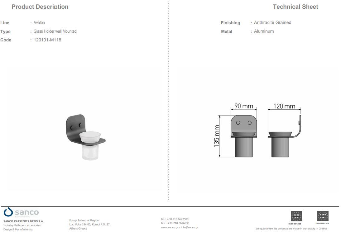 Ποτηροθήκη Επίτοιχη Antracite Grained Sanco Avaton 120101-M118