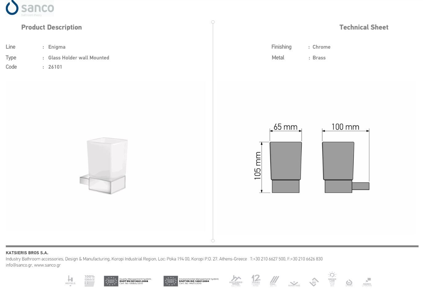 Ποτηροθήκη Επίτοιχη Χρωμέ Sanco Enigma 26101-A03Ειδική Τιμή 40,50 € Κανονική τιμή 45,00 € -