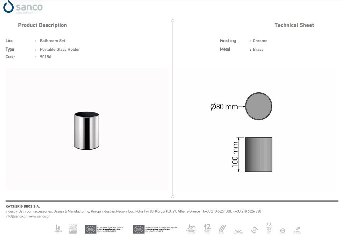 Ποτηροθήκη Επικαθήμενη 8x8x10 cm Brass Black Mat Sanco Metallic Bathroom Set 90156-M116