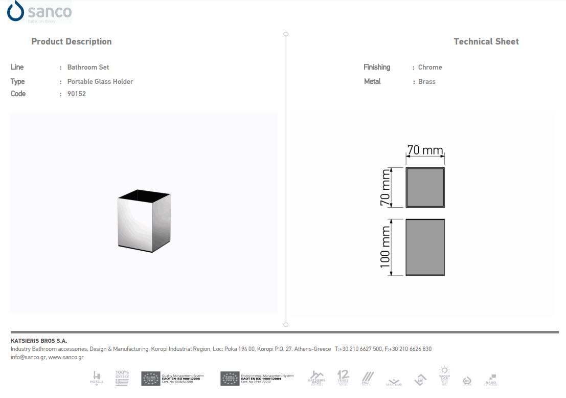Ποτηροθήκη Επιτραπέζια 7x7x10 cm Brass Chrome Sanco Metallic Bathroom Set 90152-A03
