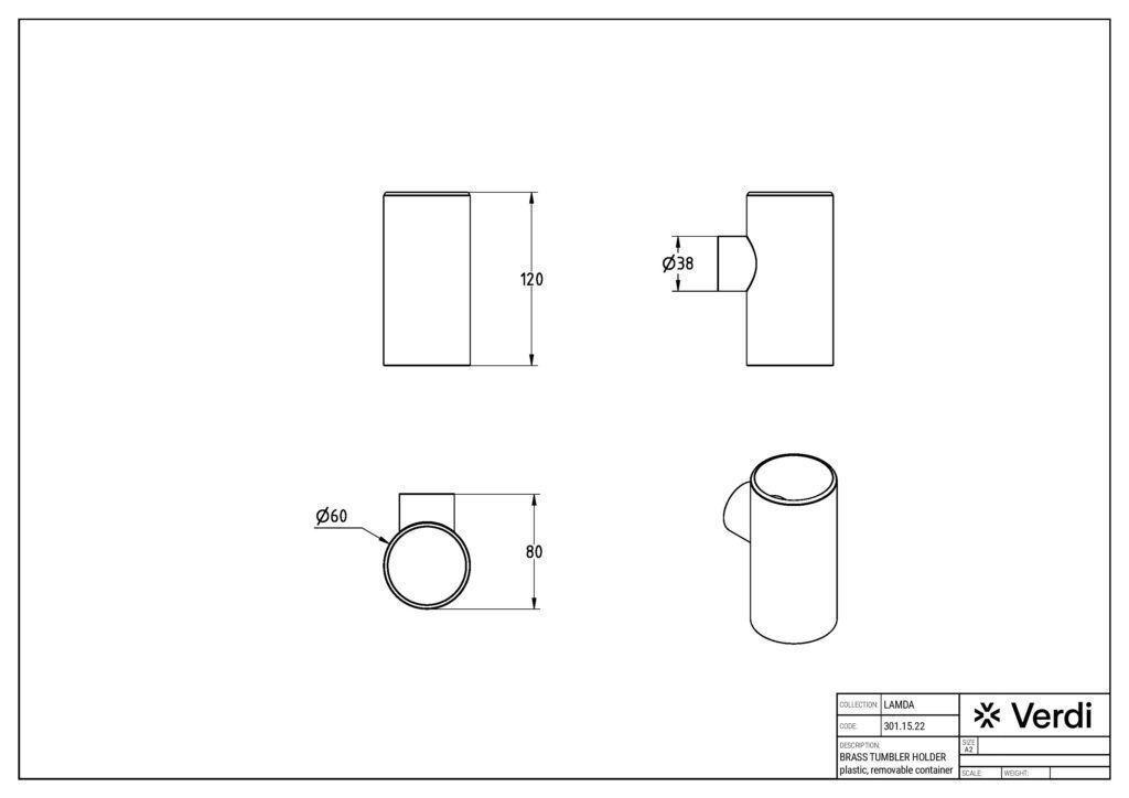 Ποτηροθήκη Μεταλλική Επιτοίχια W60xD75xH120mm Rose Gold Gloss PVD Verdi 3011551