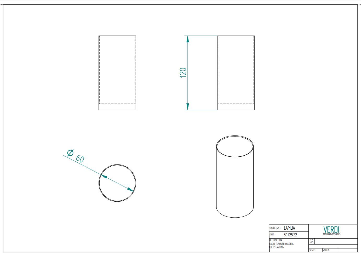 Ποτηροθήκη Μεταλλική Brass W60xD60xH120mm Verdi Lamda PVD Gun Metal Brushed 30125420