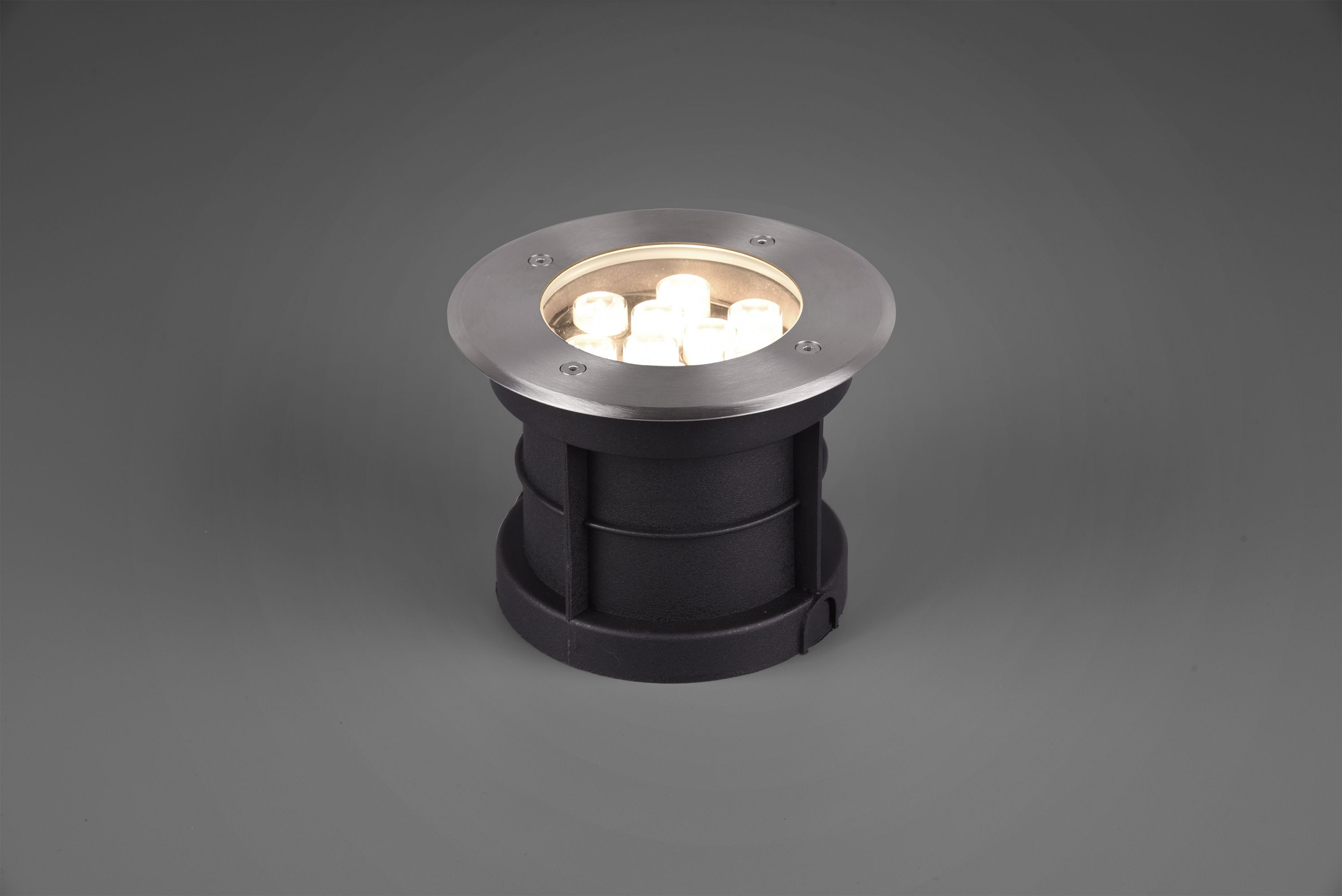 The recessed floor spotlight has a diameter of 16 cm and a height of 12 cm and can easily withstand a load of up to 2000 kg.