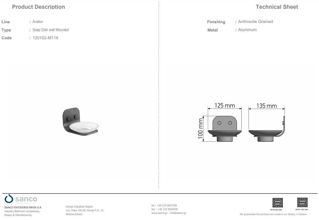 Σαπουνοθήκη Επίτοιχη Antracite Grained Sanco Avaton 120102-M118