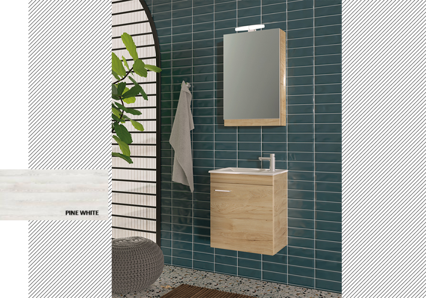 Σετ Έπιπλο Μπάνιου Βάση-Νιπτήρας-Καθρέπτης-Φωτιστικό M50xB31,5xY55 εκ. Μελαμίνη Pine White Savvopoulos Economy Emily III-8010