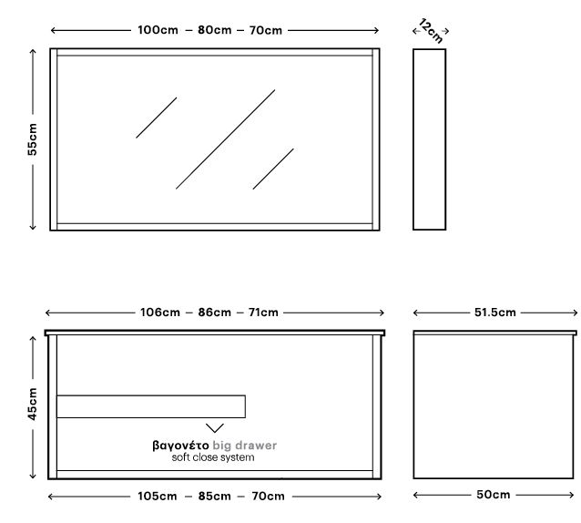 Το σετ Περιλαμβάνει: Βάση Επίπλου-Νιπτήρα-Καθρέπτη