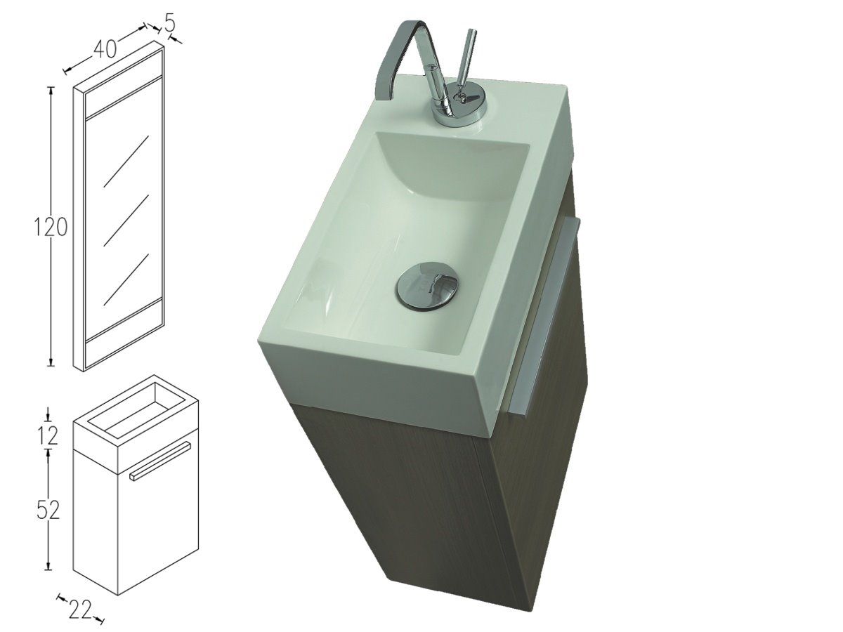 Σετ Έπιπλο Μπάνιου-Νιπτήρα τύπου Corian 40 εκ.,-Καθρέπτη 40*120 εκ., Χρώμα Iron Grey Λάκα Γυαλιστερή ECO-40 FT21.040.001IG