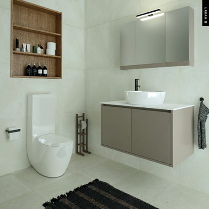 Σετ Έπιπλο Μπάνιου 100*50 εκ.MDF Λάκα Tessita Moca,Νιπτήρας Solid Λευκό, Καθρέπτης, Φωτιστικό,Savvopoulos Urban 03