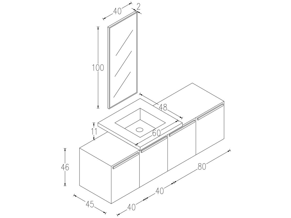 Περιγραφή: Βάση Επίπλου Κρεμαστού, δύο ντουλάπια 40εκ. & 1 ντουλάπι των 80 εκ.με εσωτερικό ράφι.Δυνατότητα επέκτασης με ντουλάπι 40 ή 80 εκ. .