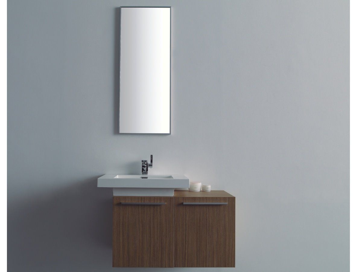 Σετ Έπιπλο Μπάνιου ECO-80BL 80 εκ.-Νιπτήρα τύπου Corian- Καθρέπτης 40*100 εκ, Χρώμα Walnut (Καρυδιά) FT21.080.001W
