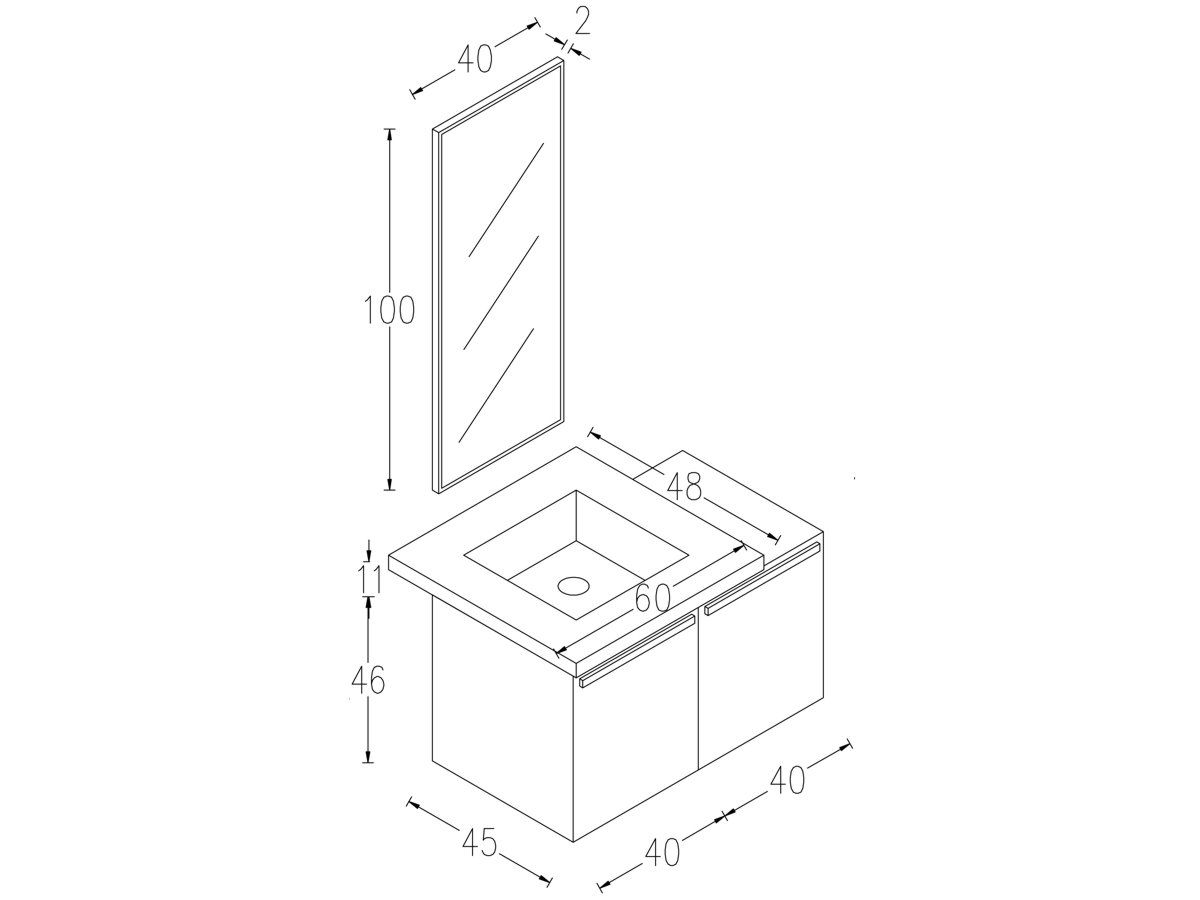 Περιγραφή: Βάση Επίπλου Κρεμαστού,δύο ντουλάπια με εσωτερικό ράφι.