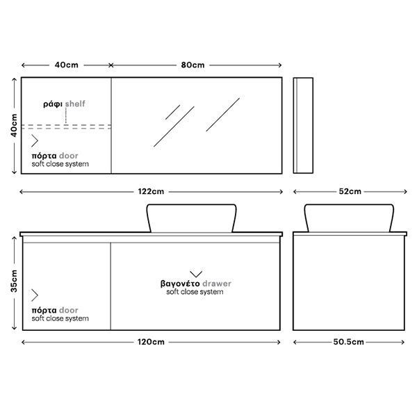 Σετ Έπιπλο Μπάνιου M120xB50xY35 εκ.Δρυς Oak Natural σε Κ/Π Θαλάσσης,Νιπτήρας, Καθρέπτης, Φωτιστικό,Savvopoulos Soul 02