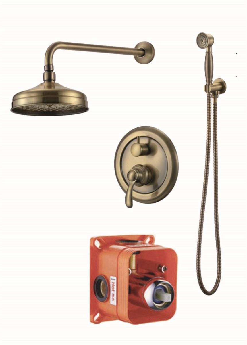 Σετ Εντοιχισμού Ρετρό 2 Εξόδων Μπρονζέ, Κώδωνας Ø20 εκ., Βραχίονας, Παροχή με Στήριγμα, Σπιράλ & Τηλέφωνο Ravelli 20026 .