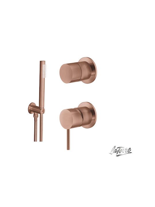 Σετ Επίτοιχη Παροχή Νερού,Τηλέφωνο, Σπιράλ & Μίκτης Εντοιχισμού με Εκτροπέα Περιστροφικό 2 Εξόδων La Torre Inox 316 PVD Rose Gold