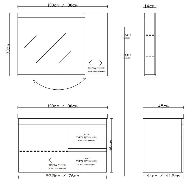 Η βάση του επίπλου διαθέτει αποθηκευτικό χώρο 1 ντουλάπι με ράφι και 2 συρτάρια όπου μπορείτε να τοποθετήσετε πετσέτες, καλλυντικά και γενικά οτιδήποτε είναι χρήσιμο για την καθημερινότητα σας.