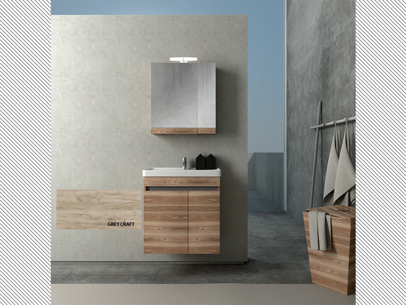 Σετ Έπιπλο Μπάνιου Βάση Π60xΥ60xΒ38 εκ.MDF Μελαμίνη Grey Craft,Νιπτήρας-Καθρέπτης-Φωτιστικό Savvopoulos Luxury City 001
