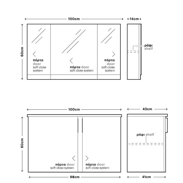 Διαστάσεις Καθρέπτη Opera: 100*60*14 εκ.