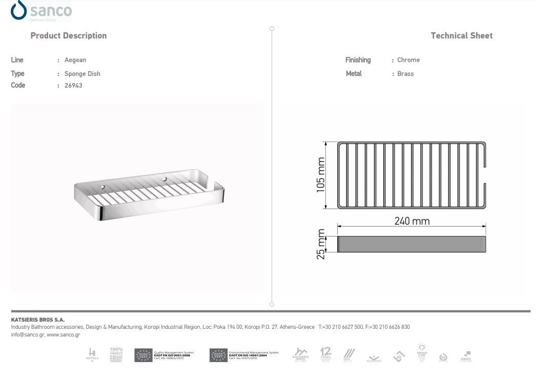 Σπογγοθήκη Επίτοιχη δύο στηρίξεις Chrome Sanco Aegean 26943-A03