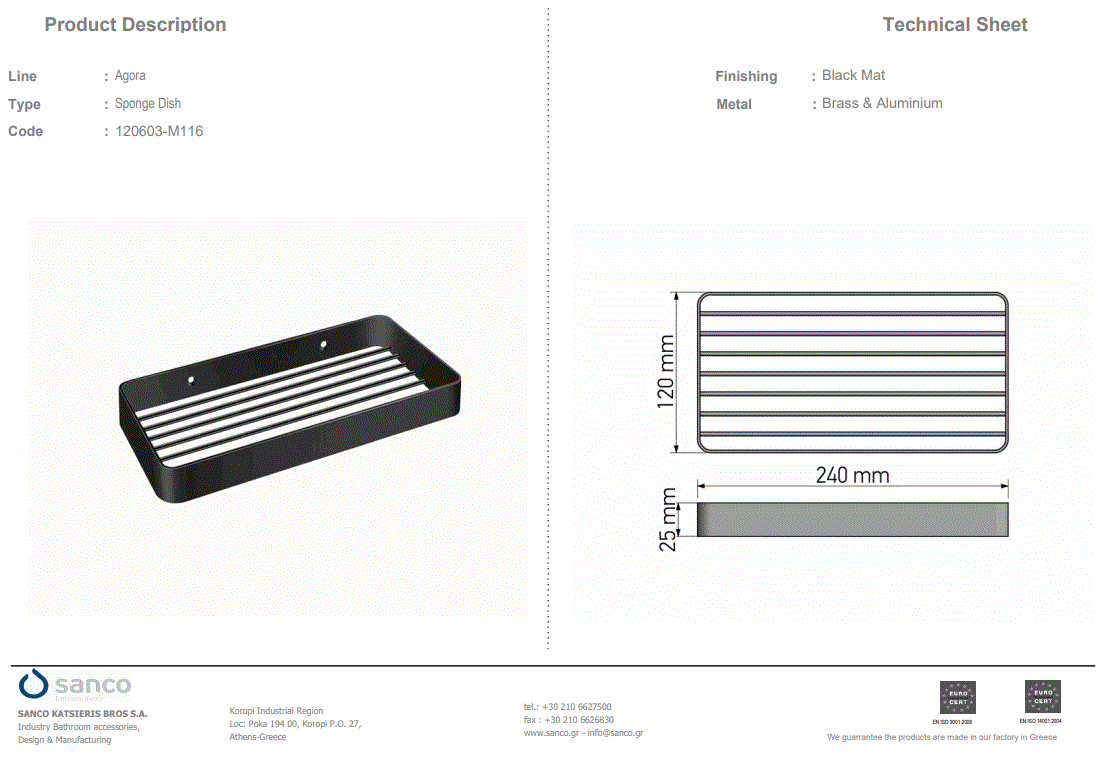 Σπογγοθήκη Επιτοίχια Black Mat Sanco Agora 120603-M116