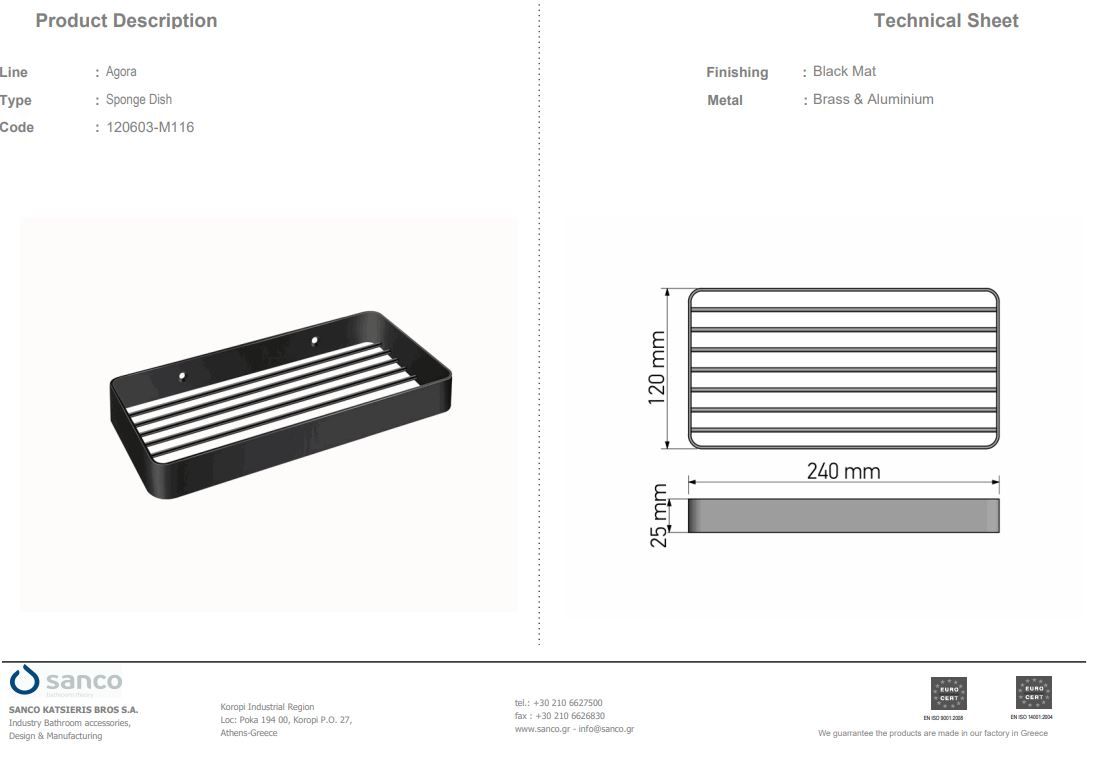 Σπογγοθήκη Επιτοίχια Black Mat Sanco Agora 120603-M116Ειδική Τιμή 45,00 € Κανονική τιμή 50,00 € -