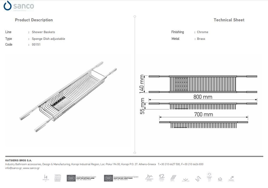 Σπογγοθήκη Μπανιέρας Ρυθμιζόμενη W70xD14xH5,5cm Χρωμέ Sanco Shower Baskets 0151-A03Ειδική Τιμή 198,00 € Κανονική τιμή 220,00 € -