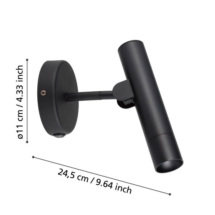 Σποτ Κινητό με Μπουτόν On-Off Μαύρο Μονόφωτο LED Eglo Almudaina 900907