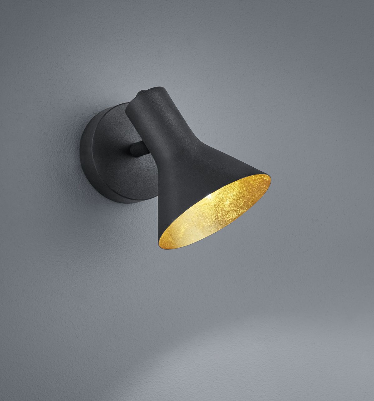 The light is designed in a matt black and the inside of the shade in a chic gold colour.