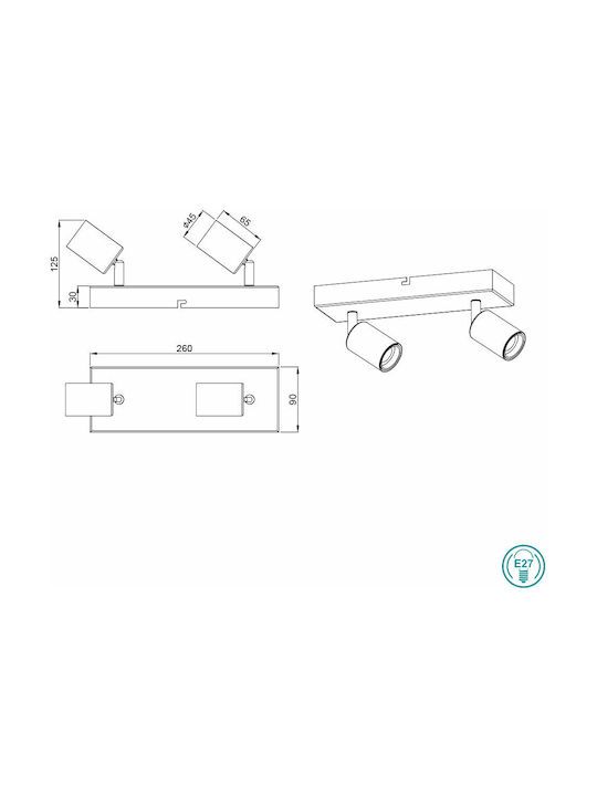 Σποτ Ράγα Δίφωτο L26x12x9cm 2xΕ27 Λευκό Ματ Trio Vannes R80182031