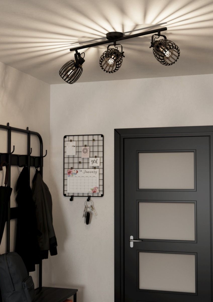 Τριπλό σποτ με ντουί E27 της Eglo σε μαύρο χρώμα.