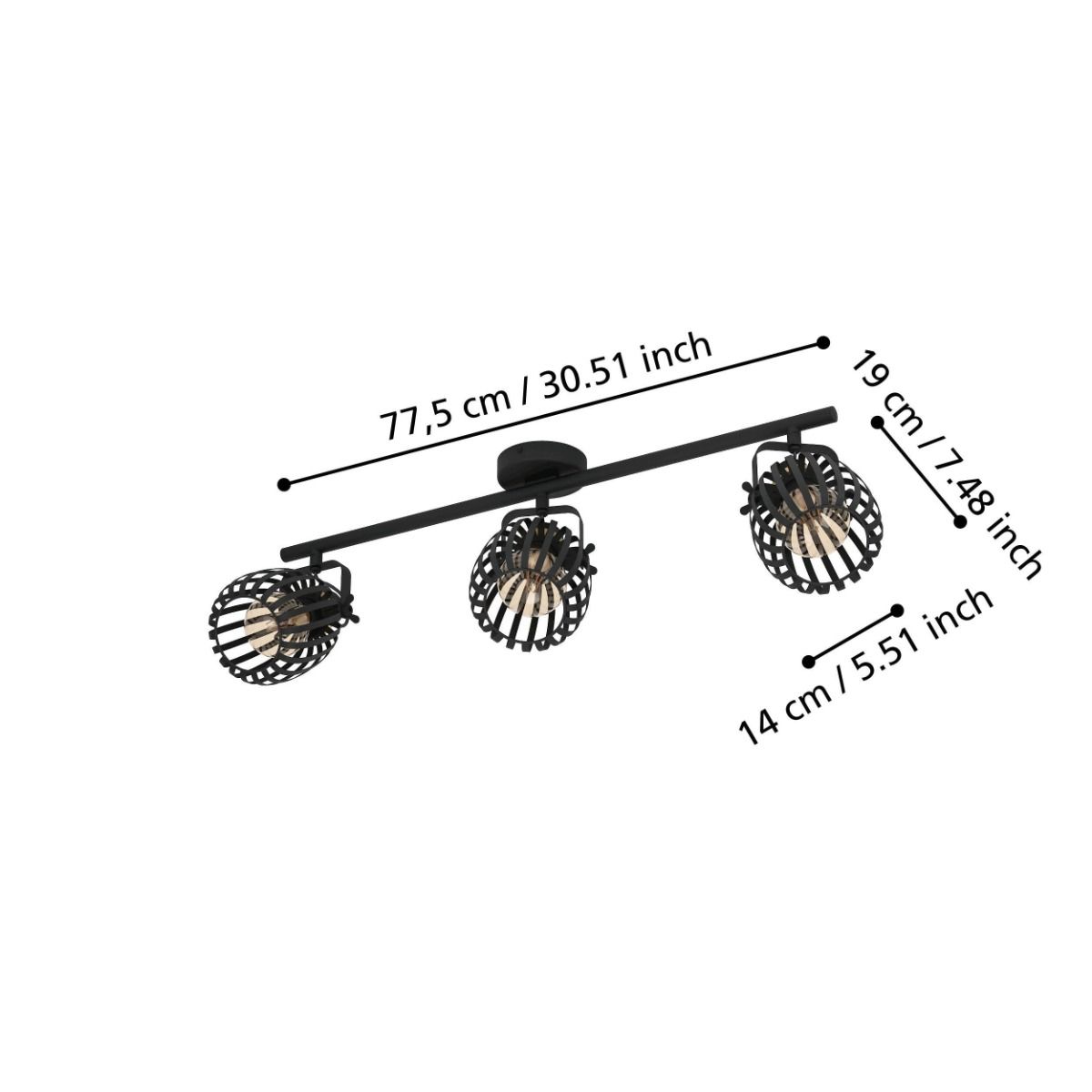 Σποτ Ράγα Τρίφωτη 3xE27 L77,5cm Μαύρο Eglo Girona 900663