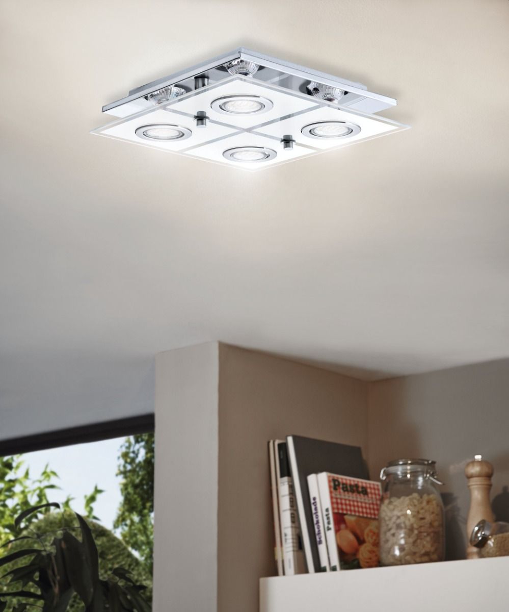 Σποτ Ροζέτα Τετράφωτη D29x29xH7m 4xGU10 3000K Ατσάλι Χρώμιο-Διάφανο Σατινέ Γυαλί Eglo Cabo 30931
