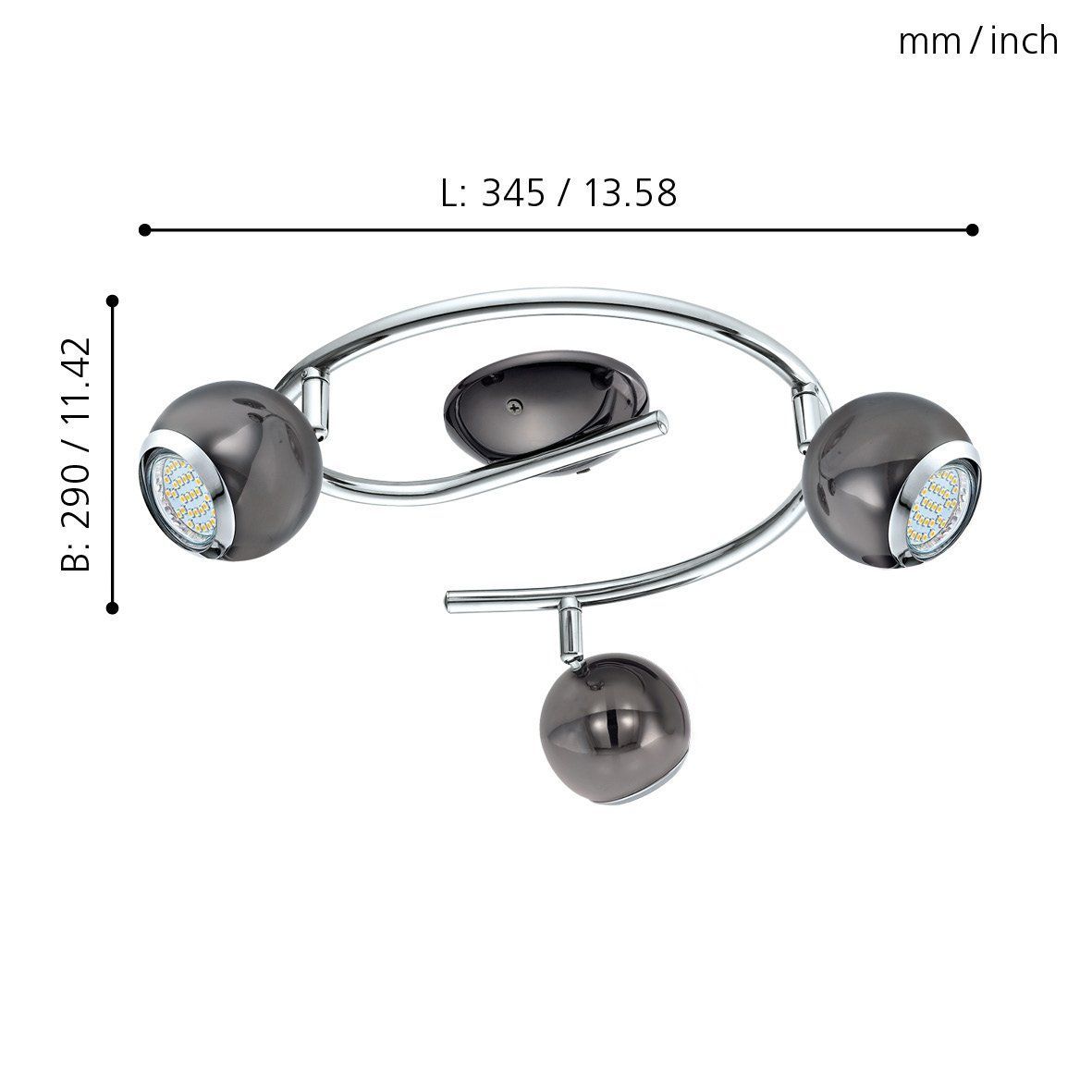 Σποτ Τρίφωτη Ροζέτα D34,5xB29cm 3xGU10 3x2,8w 3x250lm 3000Κ Ατσάλι Νίκελ-Μαύρο Eglo Bimeda 31007