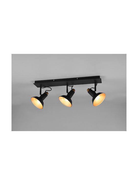 Σποτ Τρίφωτο 3xE14  60x13,8xΗ22,8cm Μέταλλο Μαύρο Ματ -Χρυσό Trio Roxie 811900332