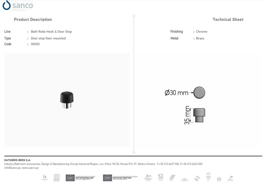 Στοπ Πόρτας Επιδαπέδιο Dark Bronze Mat Sanco Hotel Door Stop 0252-DM25