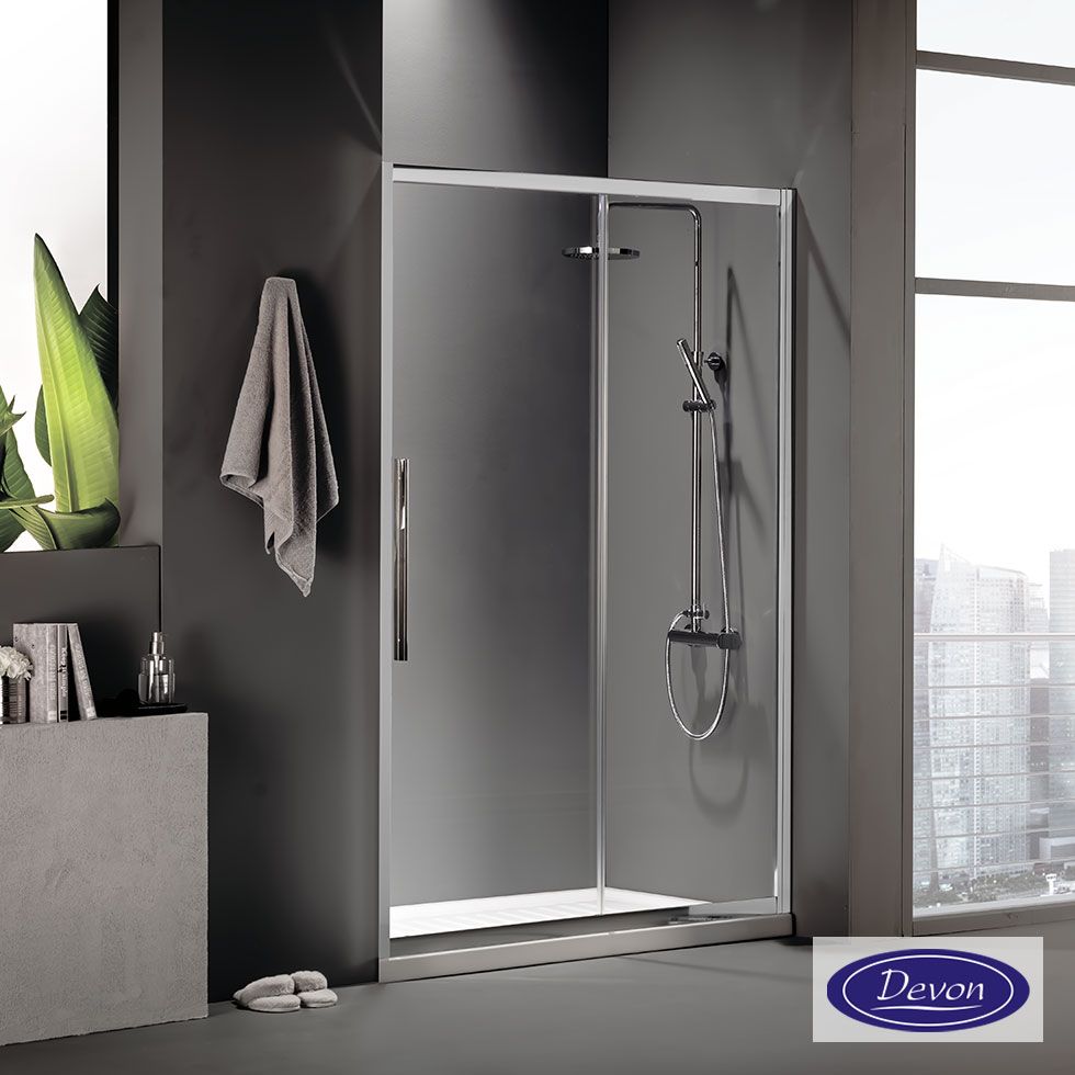 Συρόμενη πόρτα καμπίνας ντουζιέρας Flow 120 ύψους 195εκ. ρυθμιζόμενη από 117 έως 121εκ. Devon Clean Glass Chrome SLF120C-100