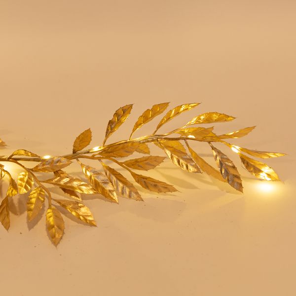ΦΩΤΙΖΟΜΕΝΗ ΓΙΡΛΑΝΤΑ ME ΧΡΥΣΑ ΦΥΛΛΑ ΕΛΙΑΣ 150cm, 30 ΘΕΡΜΑ ΛΕΥΚΑ MINI LED, ΜΠΑΤΑΡΙΑΣ 2XAA, ΠΡΟΕΚΤΑΣΗ ΠΑΡΟΧΗΣ 50cm, IP20 Eurolamp 600-22549