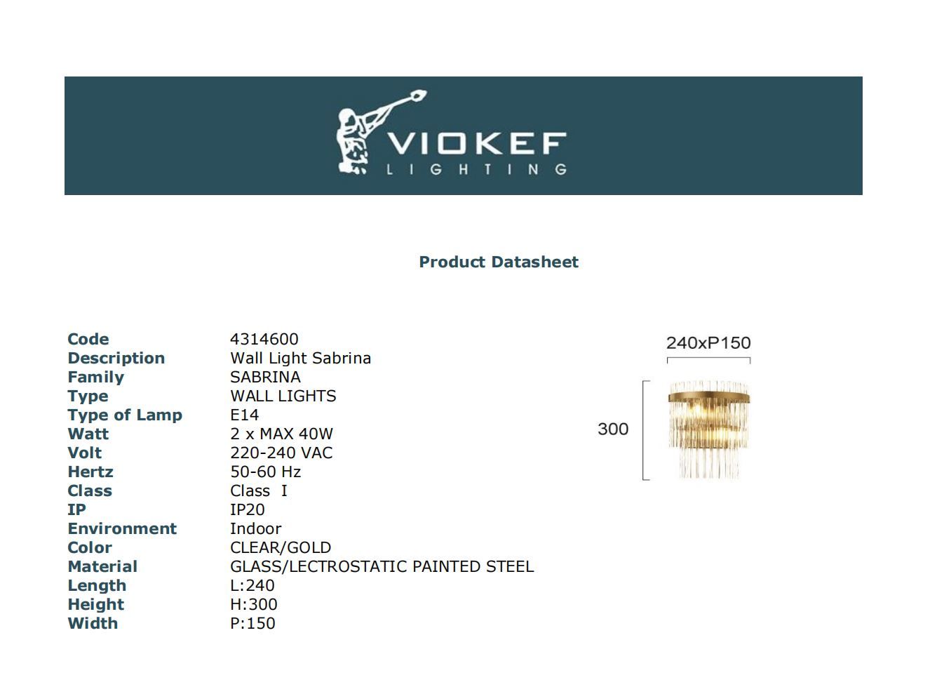 Φωτιστικό Τοίχου Sabrina Viokef 4314600