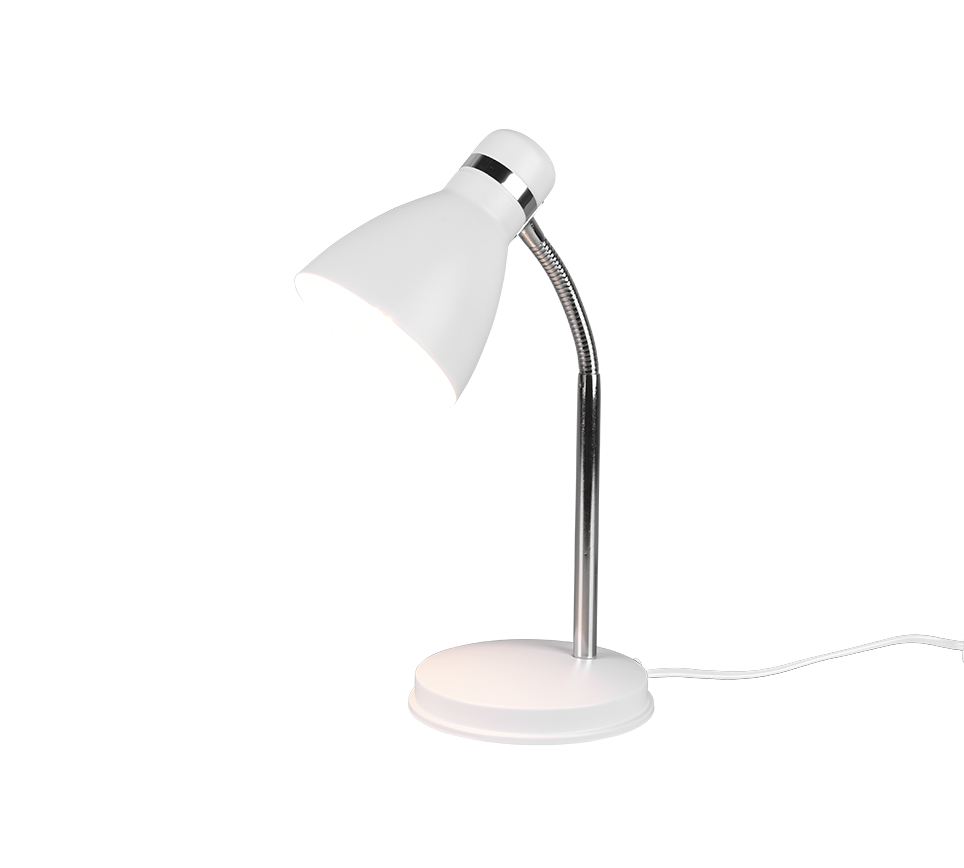 Φωτιστικό γραφείου της Trio Lighting με εύκαμπτο βραχίονα, σε λευκό χρώμα.